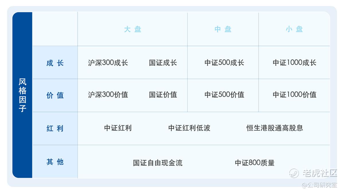 易方达基金结合市场认知度和产品发展现状,将风格因子指数梳理为成长、价值、红利和其他(如质量、自由现金流、动量等等)四大类,并对成长和价值进行了大中小盘的维度细分。