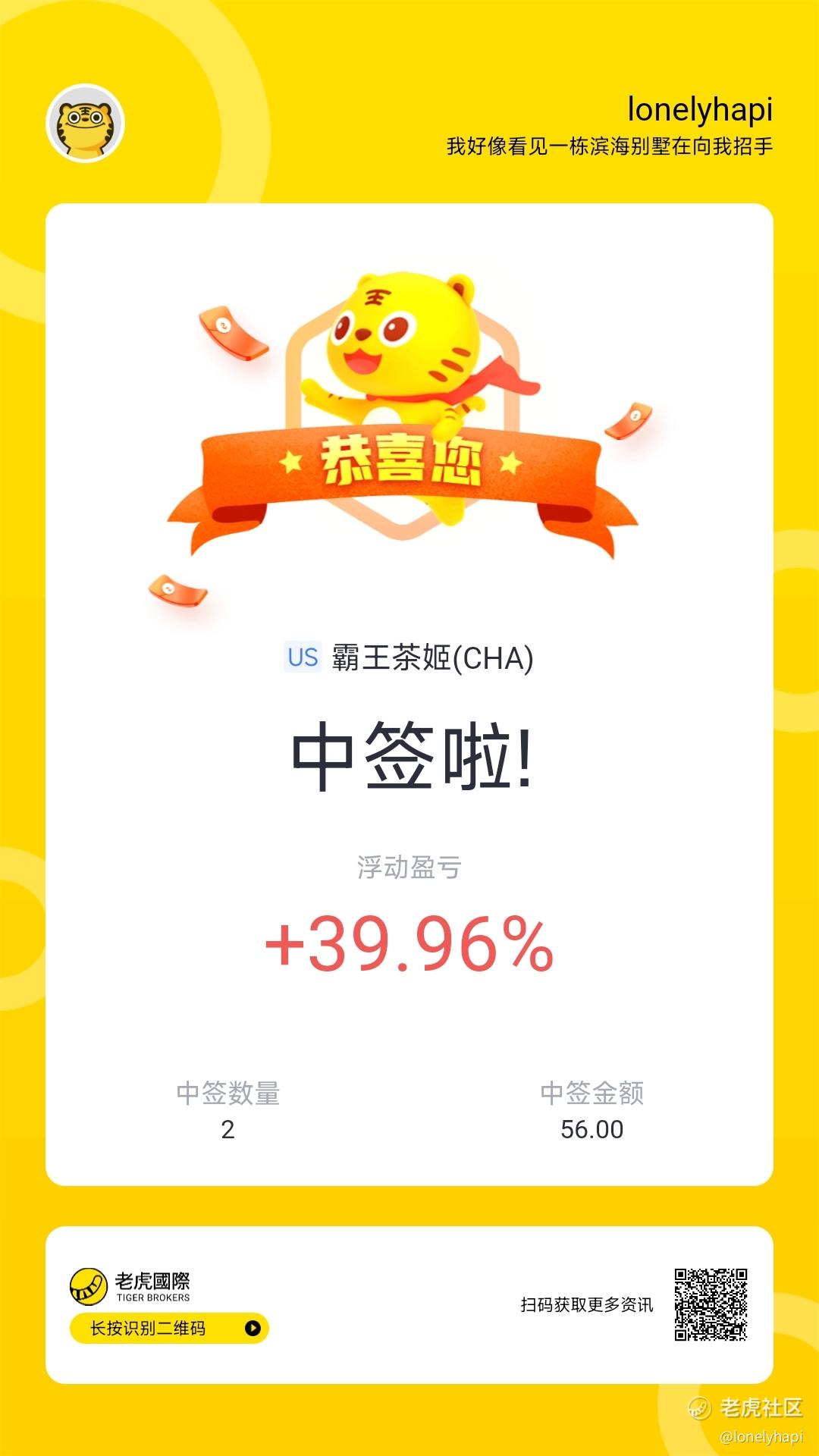 “东方星巴克”、“新茶饮美股第一股”$霸王茶姬 (CHA.US)$ 上市首日一度飙升近50%后回落,最终收涨15.86%,报32.44美元,总市值达59.5亿美元。【夜盘时段涨近5%,你看好后续涨势吗?今年港股消费股强劲崛起,老铺黄金、蜜雪冰城等年初至今涨幅均超100%,大家觉得茶姬可以继续持有吗?】