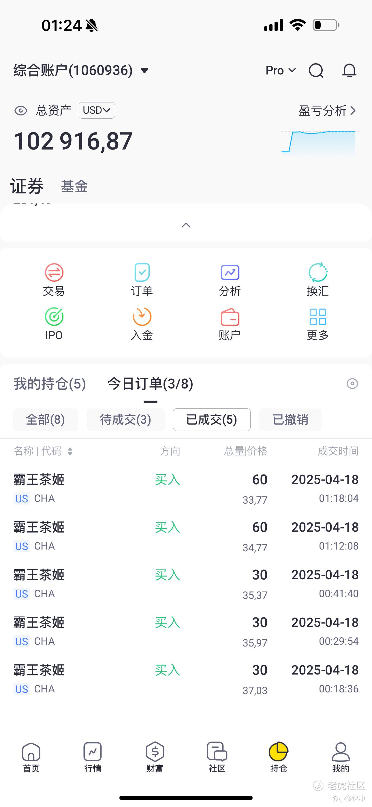 “东方星巴克”、“新茶饮美股第一股”$霸王茶姬 (CHA.US)$ 上市首日一度飙升近50%后回落,最终收涨15.86%,报32.44美元,总市值达59.5亿美元。【夜盘时段涨近5%,你看好后续涨势吗?今年港股消费股强劲崛起,老铺黄金、蜜雪冰城等年初至今涨幅均超100%,大家觉得茶姬可以继续持有吗?】