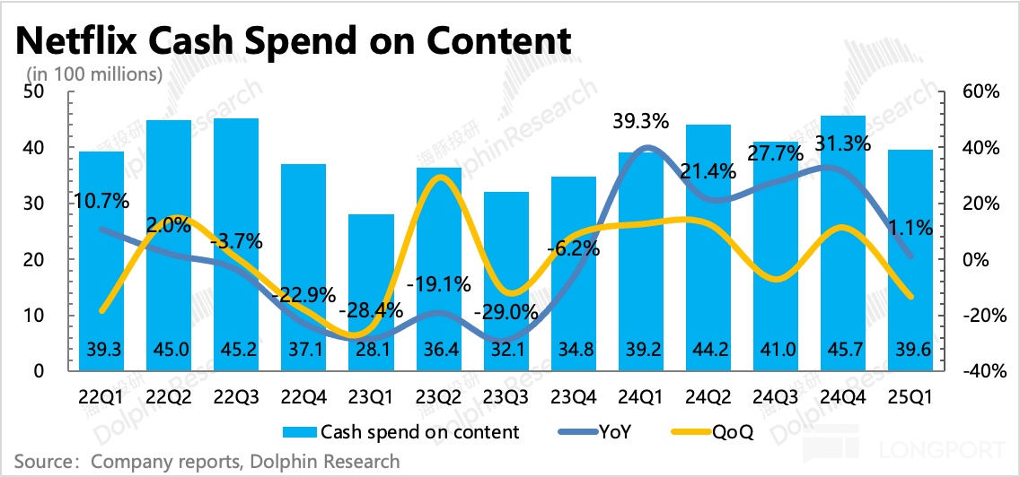 对于 2025 年二季度,海豚君预计用户净增还会保持在 400 万人左右。主要是基于《Black Mirror S7》、《You S5》以及季末的《Squid Games S3》等内容。下半年则有望随着旺季和《Stranger Things》、《Wednesday》等更多爆款续集播出,单季用户增长重回 500 万以上。