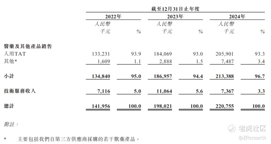 2022年至2024年,公司分别实现营收1.4亿、2.0亿、2.2亿元,2023年及2024年同比增长率分别为39.5%、11.5%。公司的营收主要来自人用TAT,收入占比超过93%。