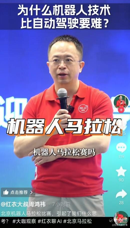 周鸿祎在看过相关比赛信息后,也在自己的社媒上发布了一条视频。他表示:其实机器人技术要比自动驾驶这块硬骨头更难啃。因为自动驾驶的工作相对而言比较单纯,但人形机器人在家做养老、搞家政的要求太复杂。更何况机器人现在没有数据,像是自动驾驶,大家每天踩油门、踩刹车的动作都在贡献数据;而机器人因为没有人用,数据就会比较缺乏。