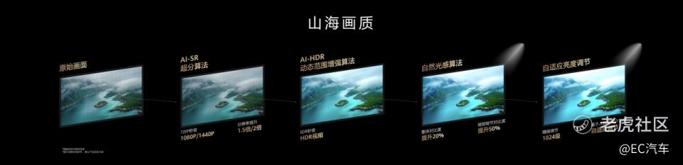 在影视空间,观影视界更精彩。全新16.1英寸车载智慧屏,具有3K分辨率和98%P3色域。在行业首个AI画质增强引擎“山海画质”的帮助下,720P视频的感官最高可达到1440P的水平。此外,百万像素智慧车灯将升级车外彩色100英寸投影,突破空间局限。