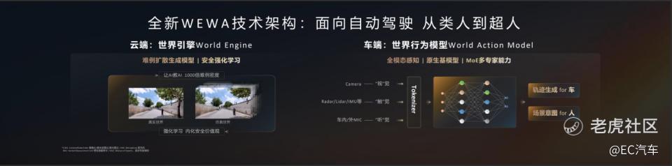 在车端,全新发布的高精度固态激光雷达、舱内激光视觉传感器、分布式毫米波雷达等模组,可显著提升车辆感知能力。世界行为模型是业内首个智驾原生基模型,具有全模态感知能力,并可以根据不同场景调用不同的能力。