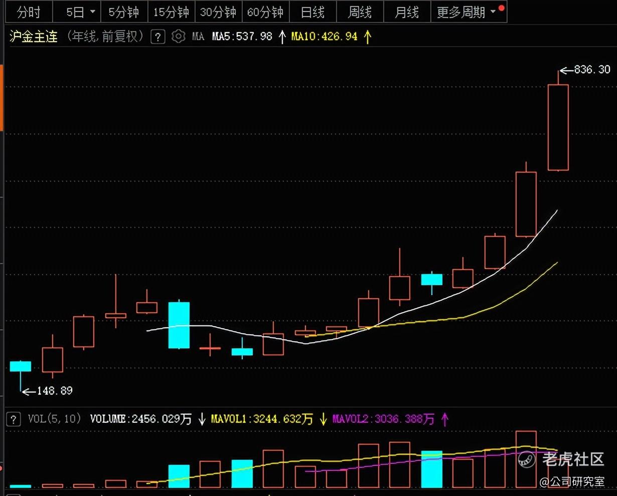 改革开放后,中国国内一直国泰民安,但整个蓝星上并不平静,战乱不时发生。近20年来,黄金价格始终走在一条上升通道。这一点,从上海金的年度K线走势上也可以看出来。