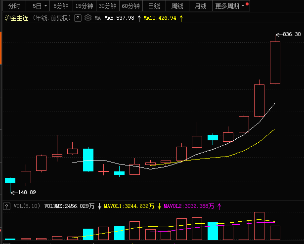 改革开放后,中国国内一直国泰民安,但整个蓝星上并不平静,战乱不时发生。近20年来,黄金价格始终走在一条上升通道。这一点,从上海金的年度K线走势上也可以看出来。