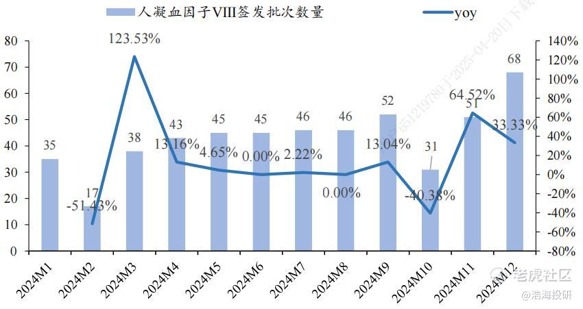 2024年人凝血因子Ⅷ批签发(单位:批次) 来源:中检院、华安证券研究所