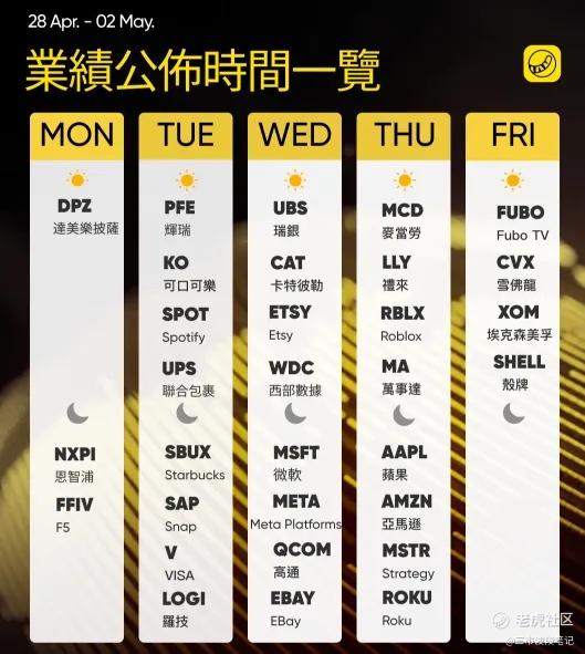 本周是大型科技股的财报周,市场除了关税的影响外,视线又将短暂的回到公司的业绩上。