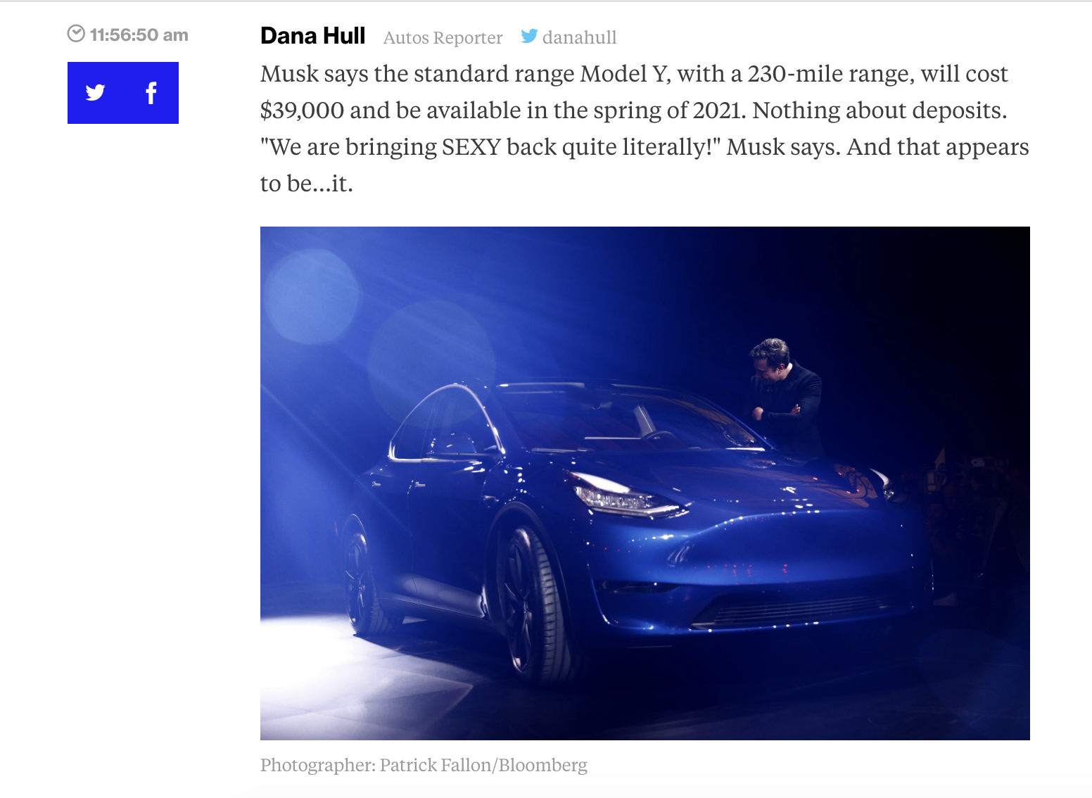 2. 长续航版:300英里(480公里)续航,最高时速130英里(209公里)/小时,0-60英里/小时加速5.5秒,售价4.7万美元,约合人民币31万元,2020年秋季交付;