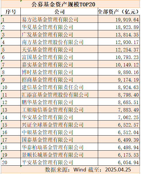 公司研究室注意到,进入资产规模TOP20榜单的基金公司,最低门槛恰好卡在6000亿元以上。