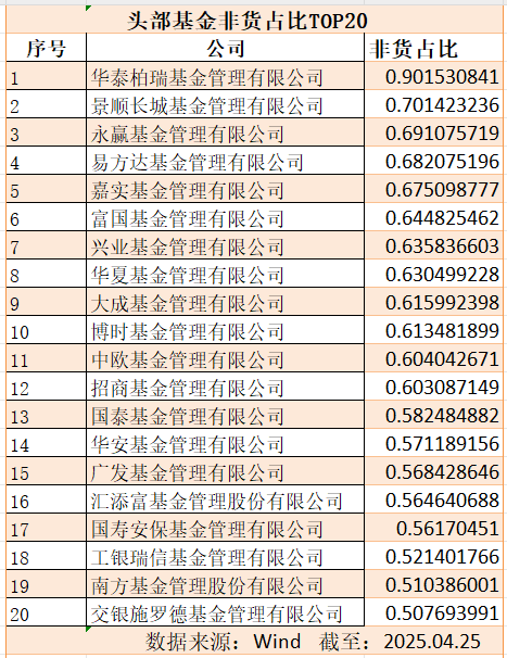 这一回,出现在非货规模占比TOP20榜单上的基金公司,名单与排序都“大变脸”。