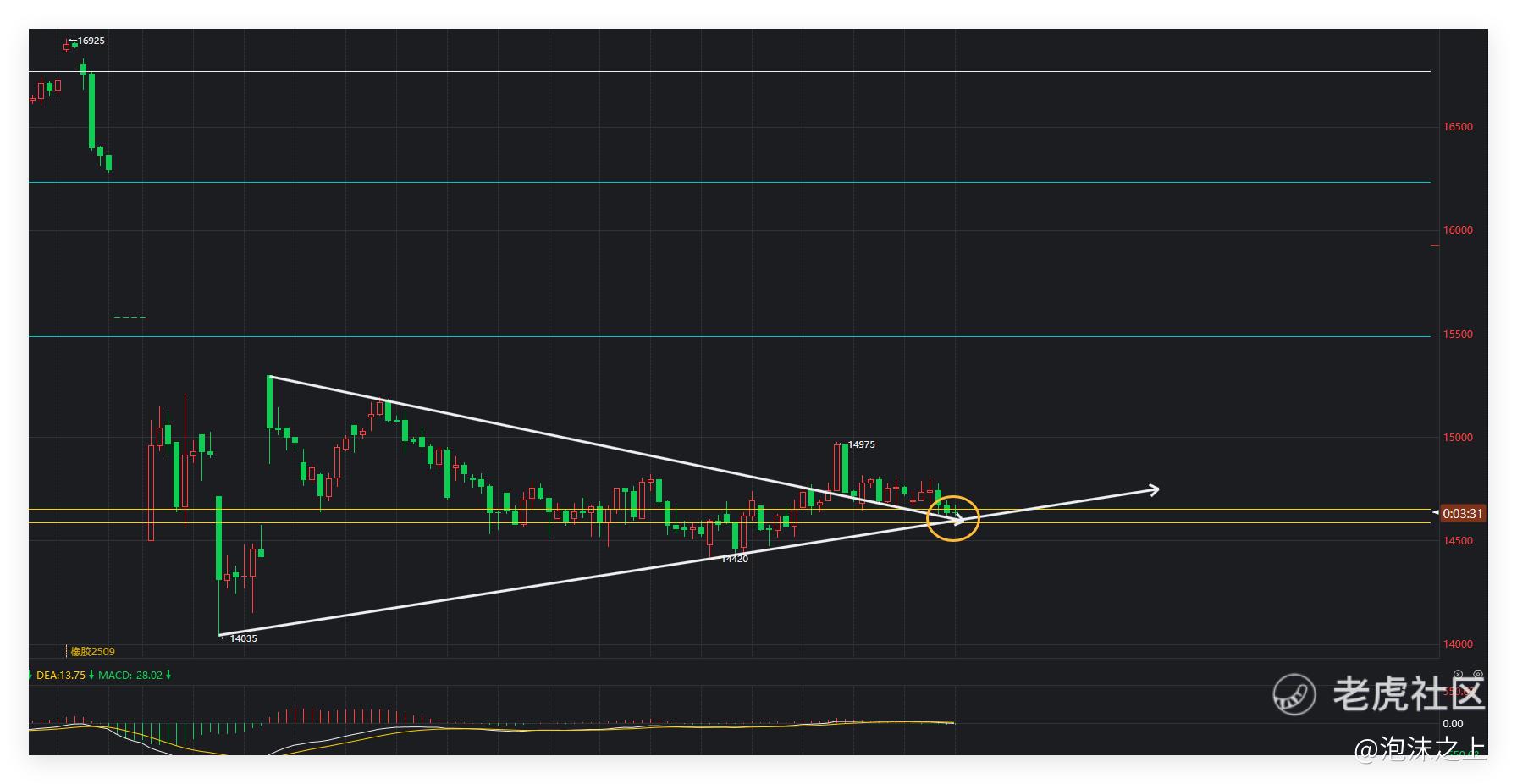 橡胶,价格回撤到关键区域,不破就往15500待涨了。