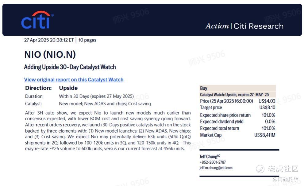花旗研报中的蔚来向好信号:核心技术量产+产品上市+降本增效
