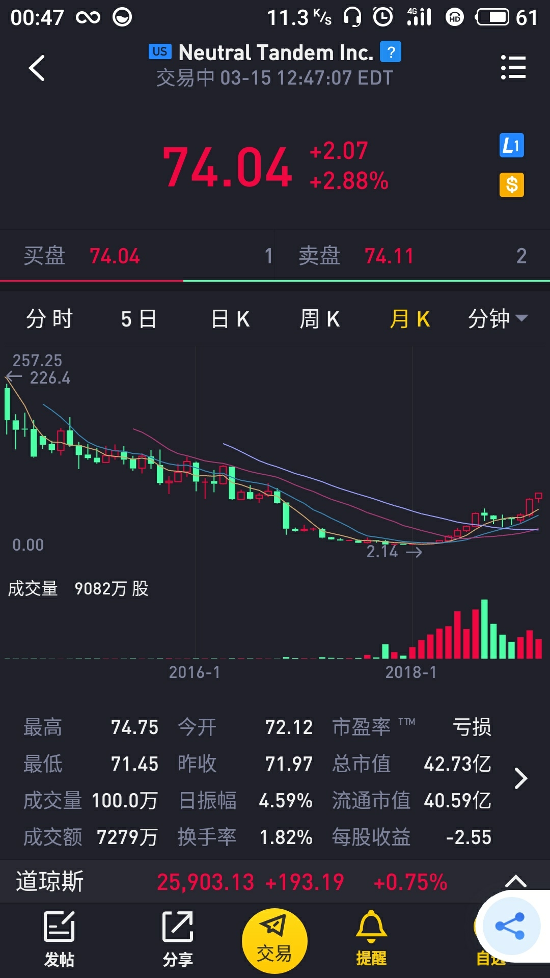 $Neutral Tandem Inc.(TNDM)$ 买这个股的人这么少吗?想交流下