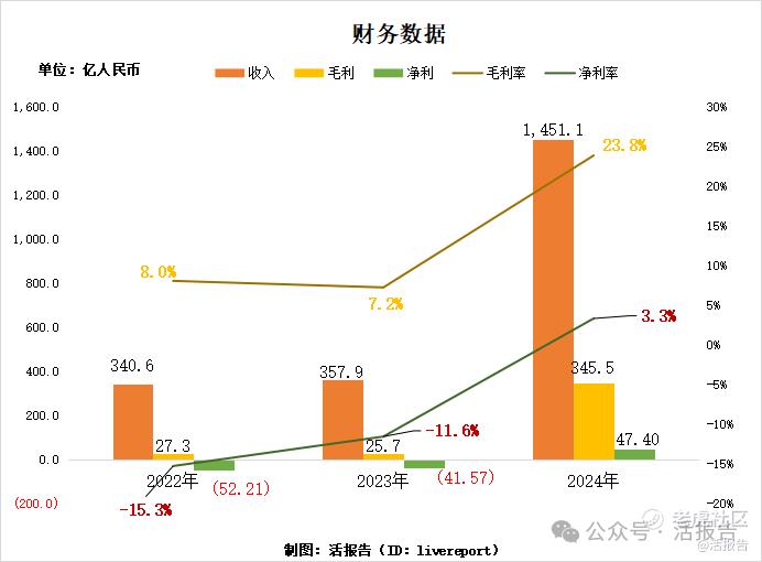 净利润分别约为人民币-52.21亿元、-41.57亿元、47.4亿元,2024年扭亏为盈;
