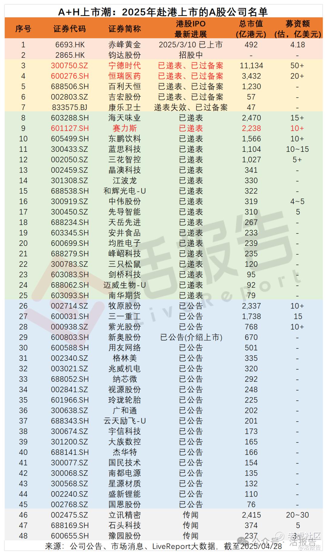 摘要:A股公司赴港潮仍在继续,两千亿新能源车企赛力斯于2025年4月28日向港交所递交招股书,拟在香港主板上市。