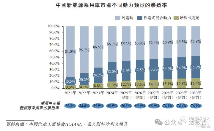 到2030年,新能源乘用车销量预计将达到1,910万辆,2024年至2030年的复合年增长率为9.5%。到2030年,中国新能源乘用车在乘用车市场的渗透率有望升至76.9%。