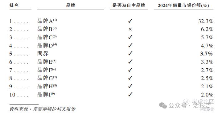 根据弗若斯特沙利文报告,2024年,从销量来看,中国新能源乘用车市场排名前10的品牌中有9个为自主品牌,问界排名第五,市场份额3.7%。