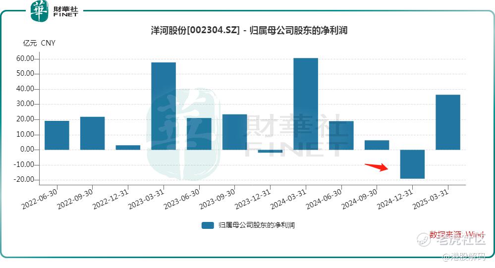 之所以出现这种情况,主要在于利润增速的变化,虽然山西汾酒近年利润增长也放缓了,但洋河股份在2024年、2025年一季度连遭大幅下滑,甚至在2024年四季度出现大幅亏损。