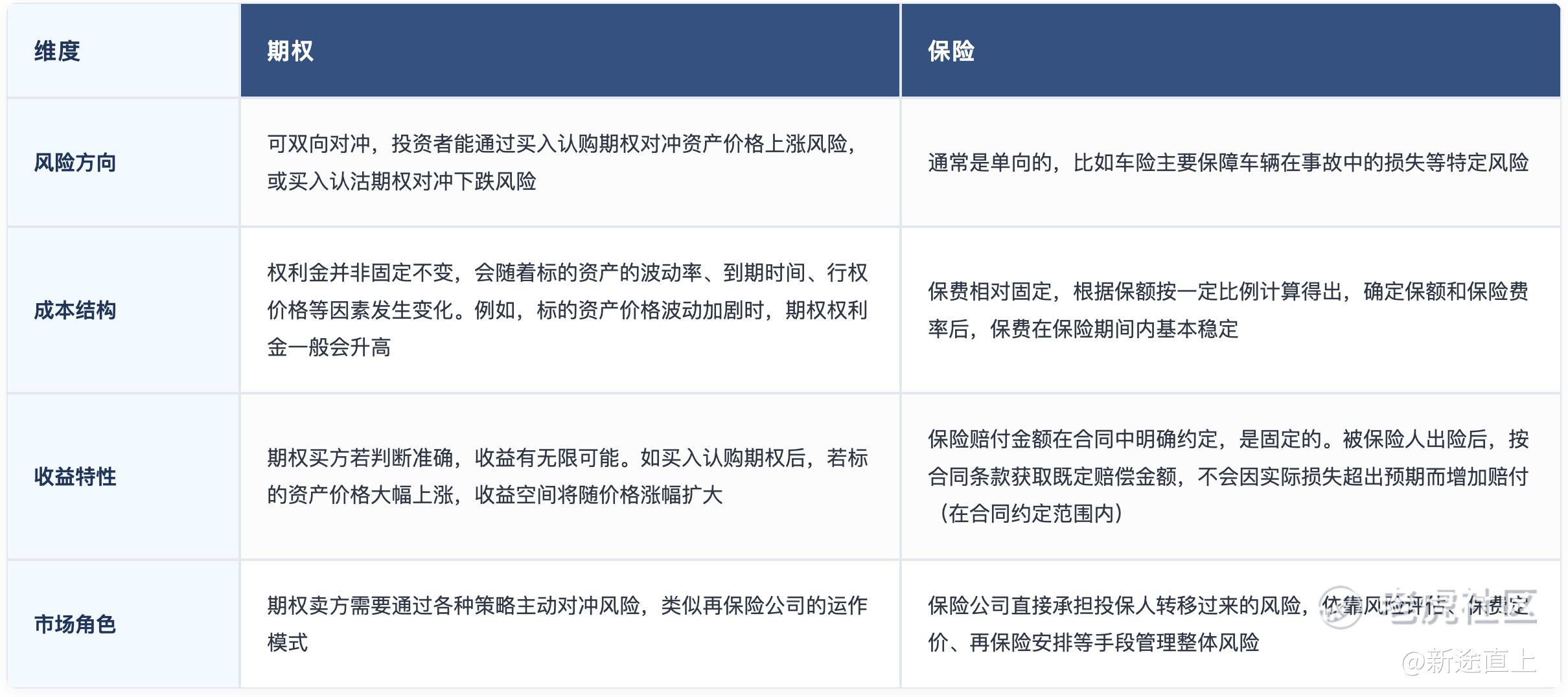 通过对比保险与期权的核心机制,能直观理解期权的 “保险” 功能。关键要点分析: