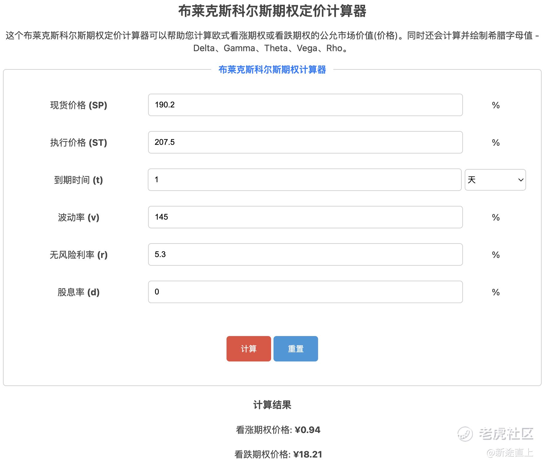 布莱克斯科尔斯模型-期权定价计算器:https://www.tskau.com/finance/blkskes