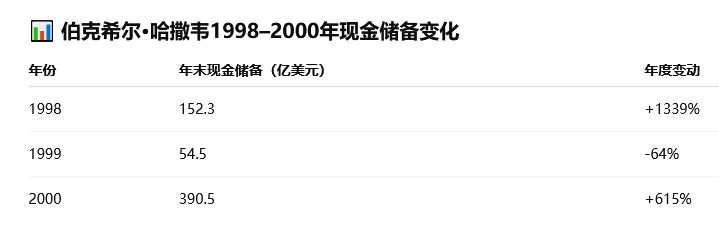巴菲特在2000年互联网经济泡沫破裂之后储备了充裕的现金抄底。