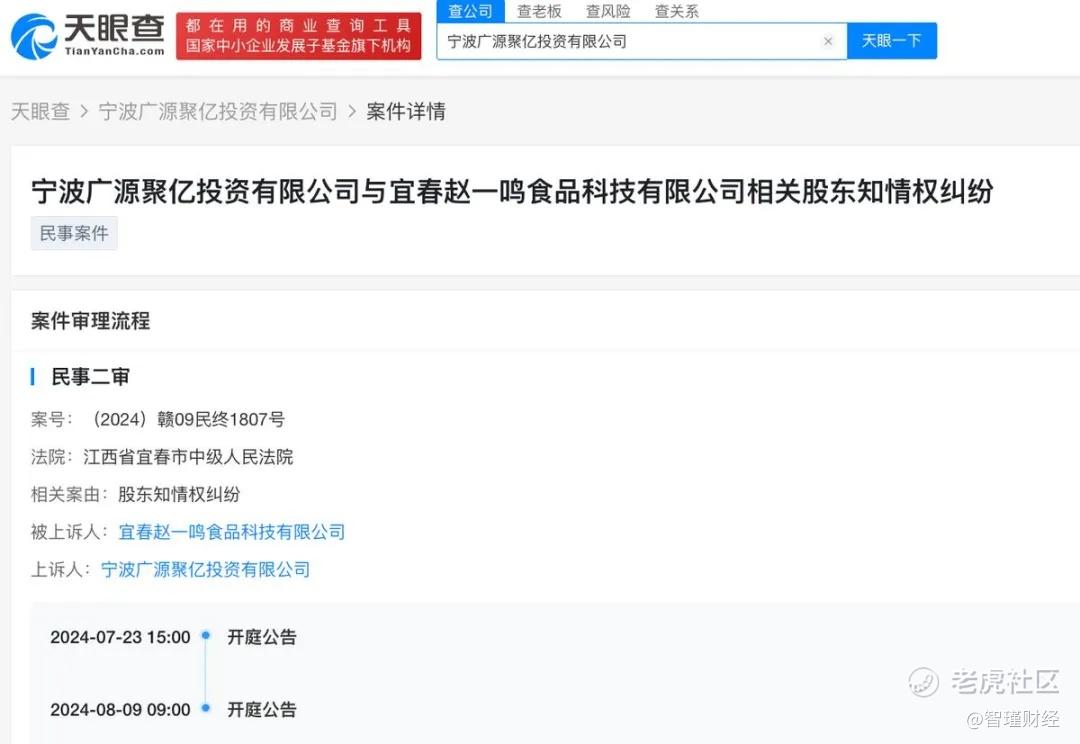 广源聚亿称,在其持股期间,赵一鸣零食从未就与零食很忙的合并向其征询过意见。同时,赵一鸣零食及相关方自始至终强调公司计划独立上市,希望广源聚亿主动出让股权。不过,这一说法并未得到赵一鸣零食方面的确认。