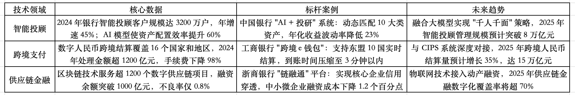 ·挑战点:投资者信任度仍存差距(仅 45% 客户完全接受 AI 决策),需强化 "智能投顾 + 人工复核" 模式,如兴银理财设置双模型校验机制