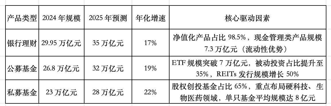 2.投资理财进入 "主动管理能力比拼" 时代,ESG 投资(规模年增 30%)、量化投资(策略占比提升至 25%)、跨境配置(产品渗透率超 15%)将成三大风口
