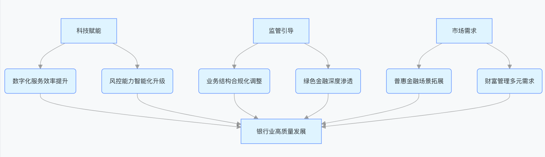 1.银行业将形成 "科技基建 + 场景生态 + 合规风控" 的竞争壁垒,中小银行需聚焦区域特色(如城商行深耕绿色信贷、农商行做透县域金融)