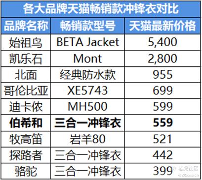 如今冲锋衣市场格局鲜明,从上图的各大品牌天猫畅销款冲锋衣中可以看出,主要分为始祖鸟、凯乐石为首的高端市场,北面、哥伦比亚牢牢占据的中高端市场,以及伯希和等一众激烈竞争的低价平替市场。其中不难发现伯希和、牧高笛、探路者、骆驼都是国产品牌,而始祖鸟,北面等高端、中高端品牌都来自海外,足以窥见目前国产品牌都在实行性价比战略快速抢占下沉市场份额的阶段,而海外品牌则更多保持品牌调性,不轻易降价,专注于品牌形象的维护。