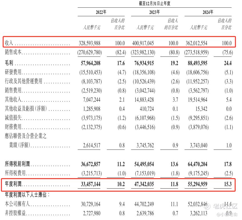 公司从2022~2024年营收分别是3285.94亿、4009.17亿、3620.13亿,2024年营同比增长-9.7%;2022~2024年的净利润分别是334.57万、473.42亿,552.95亿,2024年的净利润同比增长16.8%。