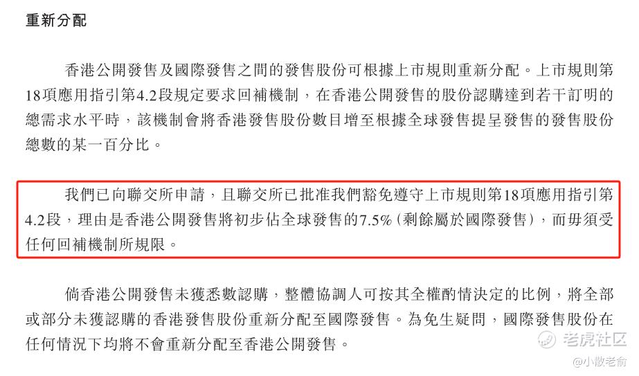 宁德时代本次招股取得了港交所的豁免,此次公开发售部分占比 7.5%,就算申购倍数超过了100倍也不用回拨。