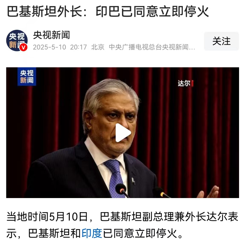 不过11日,巴方又发布消息,称巴方从未主动要求停火,而是被动回应印度停火要求,而作出的停火决定!