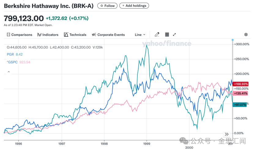 BRKA,PGR,VS 标普500指数 1995年8月到2000年12月31日