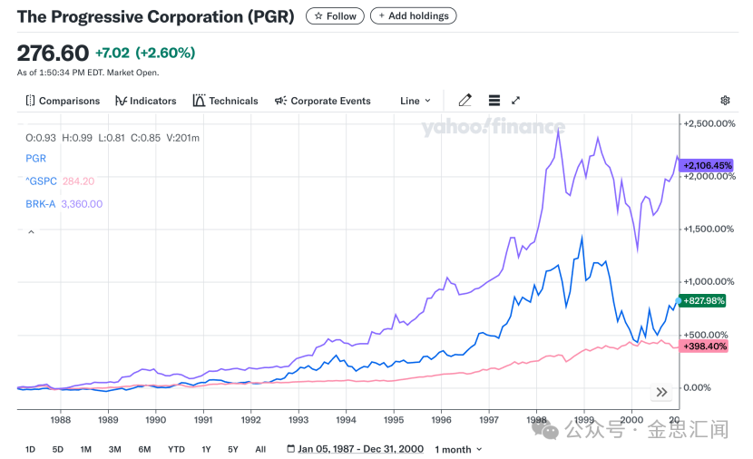 前进保险,伯克希尔标普500指数 1987年1月-2000年12月