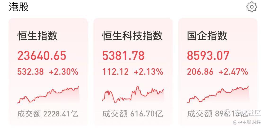 $恒生指数(HSI)$ $国企指数(HSCEI)$ $恒生科技指数(HSTECH)$ 5月14日,港股市场迎来了一波全面的上涨行情。三大指数——恒生指数、国企指数和恒生科技指数均录得超过2.1%的涨幅,其中恒指与国指分别收涨2.3%及2.47%,而科指更是以2.13%的涨幅收盘。尽管中美削减关税的消息给市场带来了一些波动,但整体趋势仍保持了向上的势头。