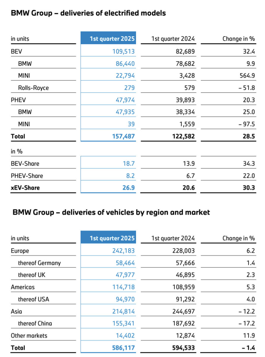 BMW集团在2025年第一季度交出一份稳中带忧的答卷,交付总量小幅下降,利润端承压。中国市场作为集团核心区域,销量明显下滑,成为全球业务中的主要压力来源。