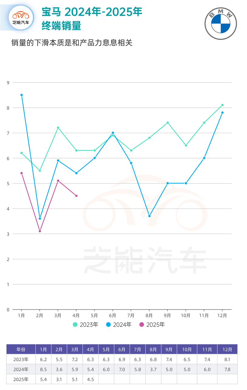 ◎ 2025 年 1 月,宝马集团销量为 5.4 万台;