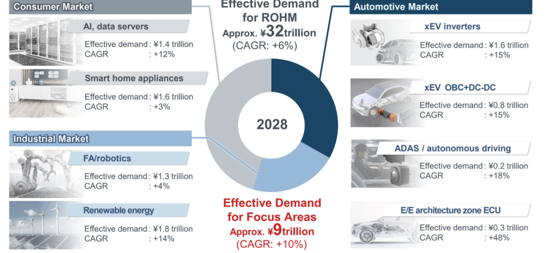 在传统业务承压背景下,ROHM将SiC功率器件确立为重要突破口,拥有更高的耐压能力与能效比,在电动车、能源、电源管理等领域具有广泛应用潜力。尽管目前尚未盈利,但公司在研发与产能布局方面持续推进。