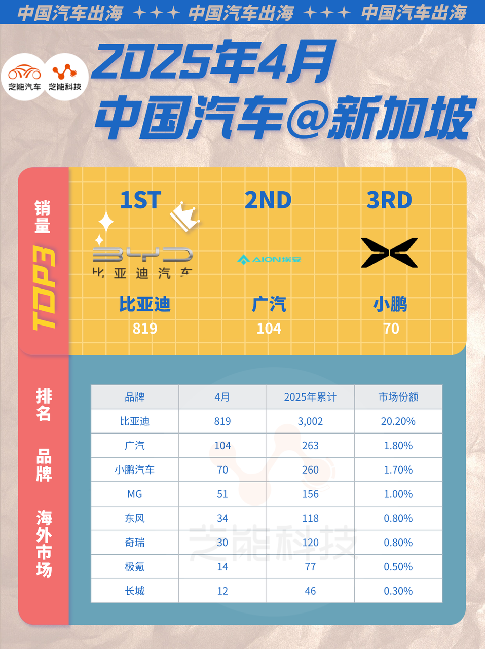 芝能科技观察到,中国汽车品牌正通过产品力与价格优势,在新加坡这一高端成熟市场实现快速突破,重新定义本地市场的竞争格局。