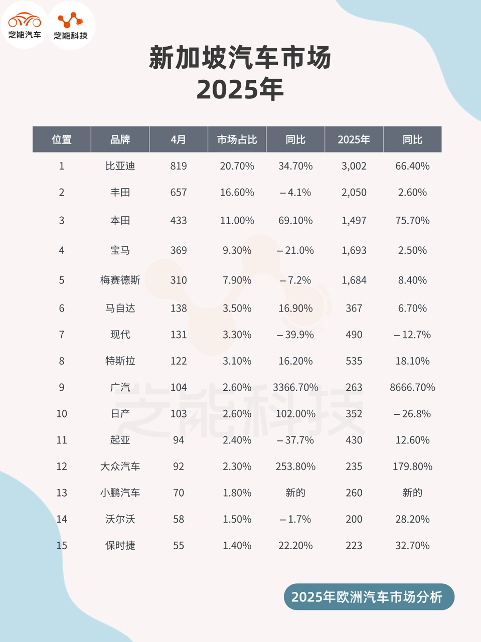 ◎ 比亚迪持续扩大领先优势,4月销量占比超过五分之一,标志着其已在新加坡市场实现品牌主导地位。