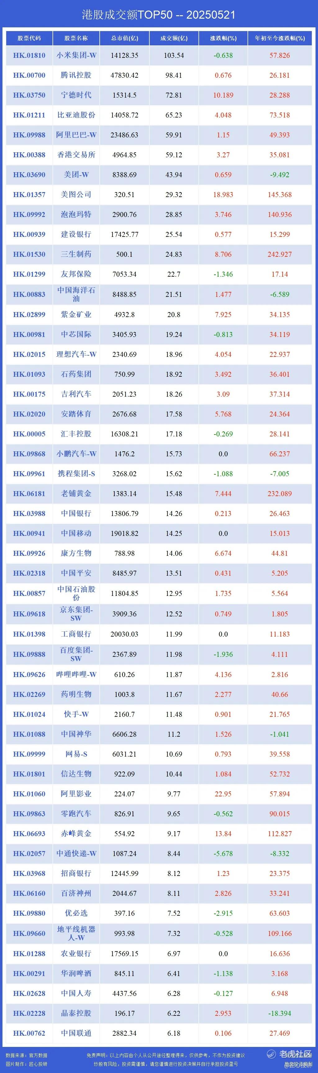 今天01357美图公司,02057中通快递-W上了成交额榜单