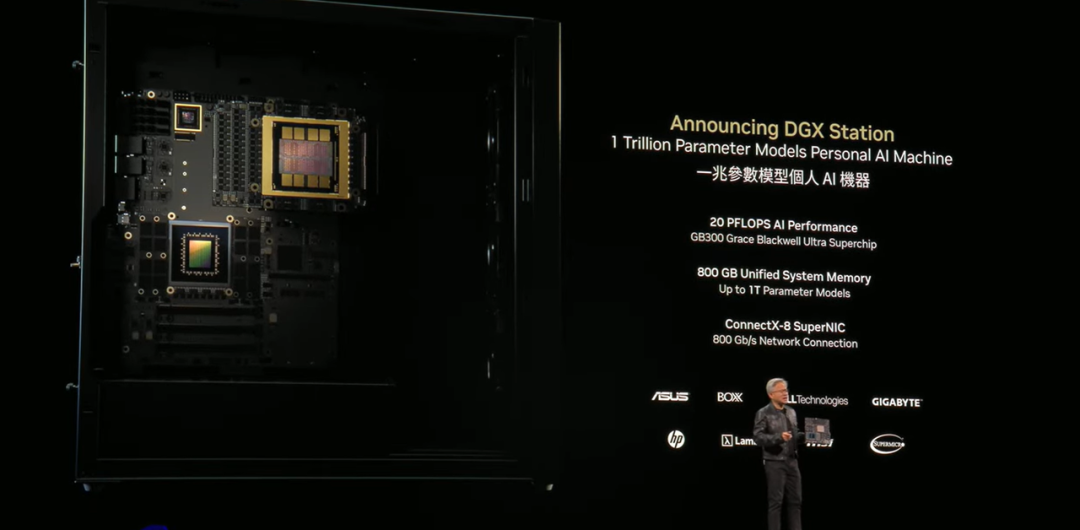DGX Spark AI工作站也体现了“AI普惠化”趋势。面向开发者、学生和研究者,它具备高达1 PetaFLOPS的算力,支持运行万亿参数模型,是桌面级的“超级计算机”。