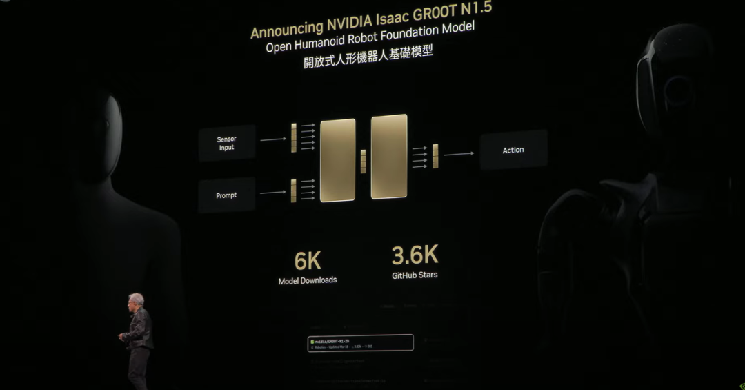 在Isaac Groot N1.5平台的加持下,英伟达将Jetson Thor芯片作为核心,推动从模拟、训练到部署的全栈能力。