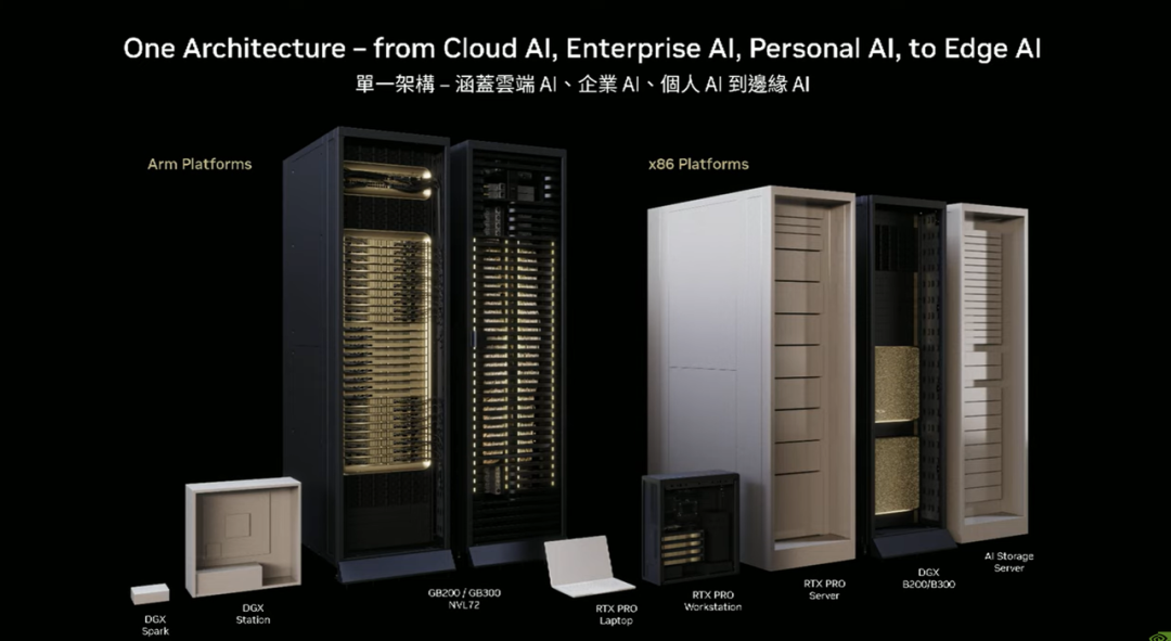 发布涵盖了Grace Blackwell系统、DGX Spark AI工作站、NVLink Fusion互连技术等新一代技术,还详述了英伟达在自动驾驶、机器人、量子计算、物理引擎、数字孪生等多个前沿领域的战略布局。
