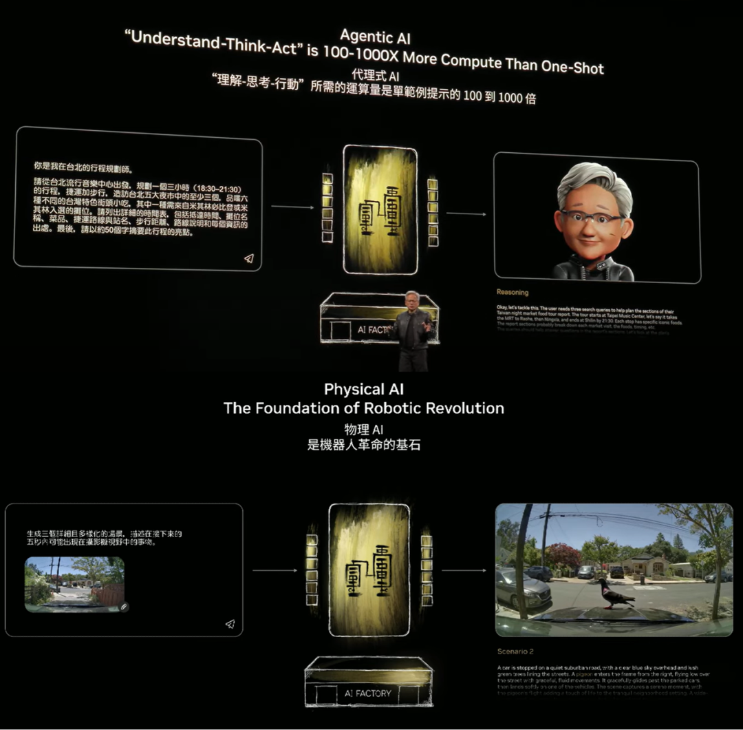 这种AI能够像“代理人”一样在复杂环境中自行判断与规划。而“Physical AI”的概念则进一步延伸AI感知边界,使其能依据现实世界中的物理规律进行推理和交互。