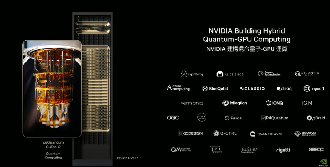 ● 量子计算方面,英伟达推出了AQ2Q平台,结合GPU进行量子前后处理、误差校正与控制。