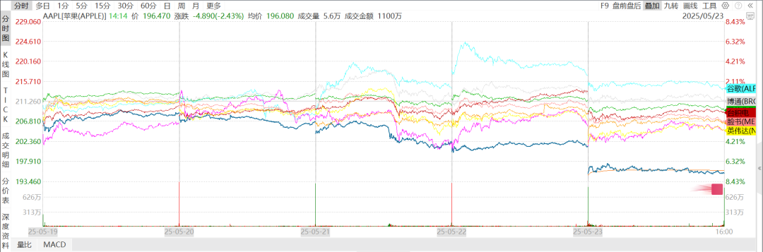 苹果累跌7.57%,市值失守3万亿美元,市场关注特朗普对其加关税以及WWDC如何。