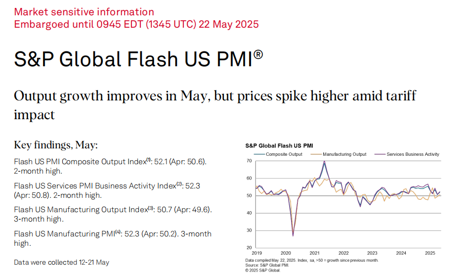 美国标普全球PMI均好于预期,显示经济在4月降温后有所反弹,许多指标都上扬,新订单价格指数涨幅较快。